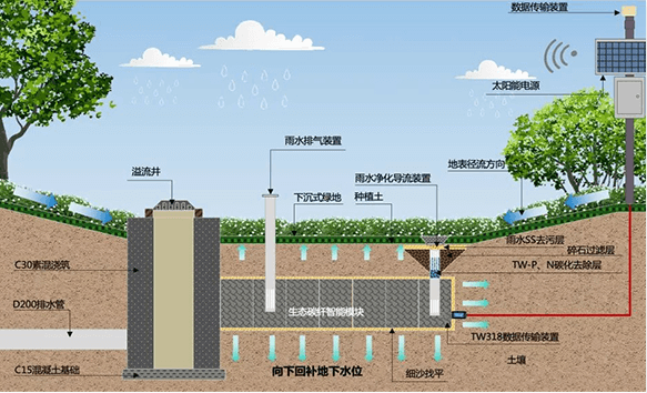 含雨水收集回用系統集成,智慧海綿4.0的運行和監測系統等。可有效提升城市雨洪管理水平和標準,實現真正意義上的高水平海綿城市建設。